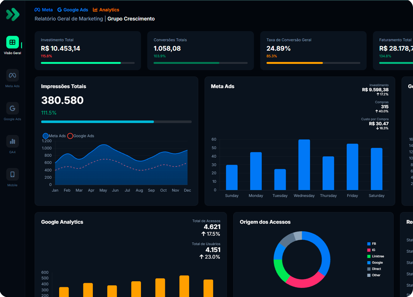 Assesoria focada em escala e performance que une estratégias de marketing e otimização de vendas para acelerar o faturamento de empresas.